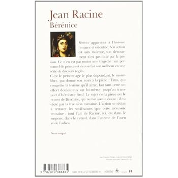 Bérénice appartient à l'histoire romaine et orientale. Son action est sans violence, son dénouement n'est pas dicté par la passion. Ce n'en est pas moins une tragédie : un personnel de princes et de rois fait son malheur en une série de discours réglés.C'est le personnage le plus dépendant, le moins libre, qui donne son nom à la pièce ; Titus, qui congédie la femme qu'il aime, fait sans cesse un effort douloureux sur lui-même, jusqu'au transport d'héroïsme final. Le sujet de la pièce est le renvoi de Bérénice, qui ne fait aucun doute : il est dicté par la tradition romaine. L'action se réduit à retracer les souffrances que cette nécessité entraîne : tout l'art de Racine, ici, est dans le suspens, dans le retard, dans l'attente de l'aveu et de l'adieu.